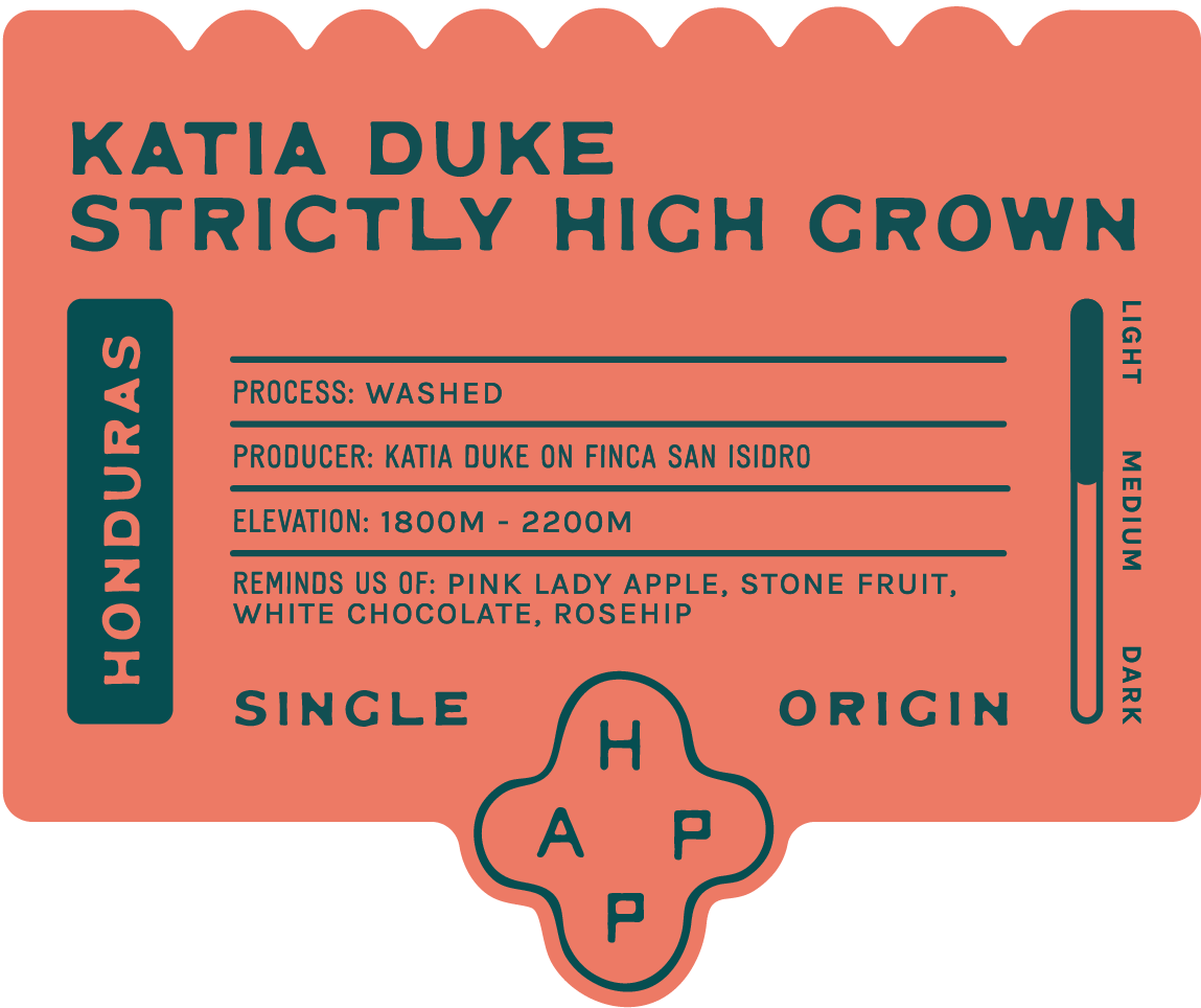 This is Happ’s third year purchasing this same lot of coffee from Katia Duke’s Finca San Isidro. We are excited and honored to share this coffee and its story with you all. Katia Duke’s Washed Catuai from Finca San Isidro is more than just a delicious cup - it’s the result of a deep-rooted family tradition and a journey of resilience.